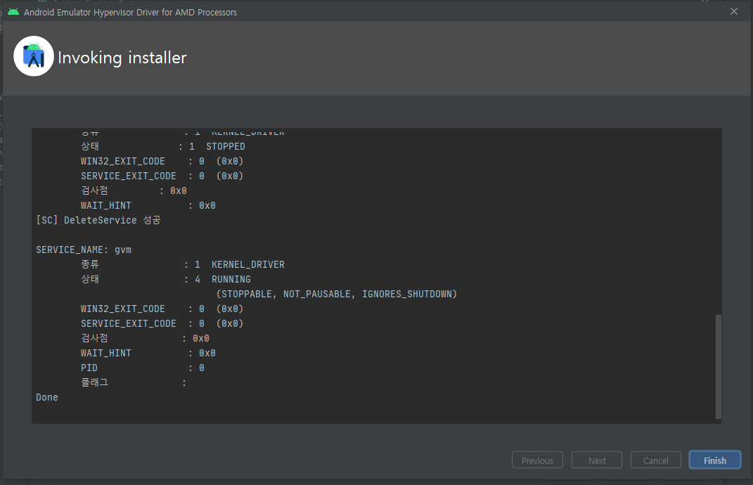 Android Emulator Hypervisor Driver for AMD Processors installation failed.